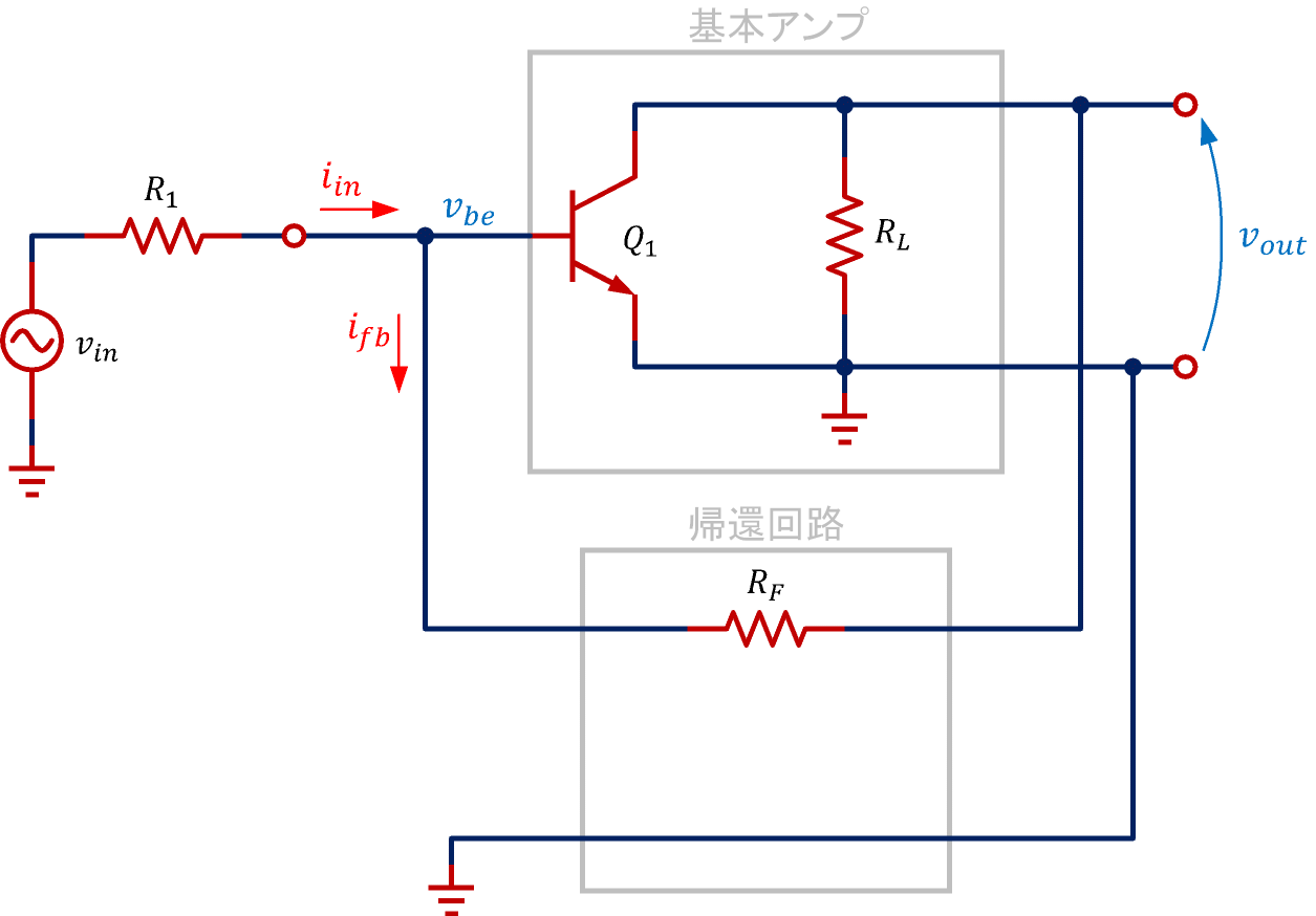 負帰還回路の考え方(電圧帰還・並列注入形の例)