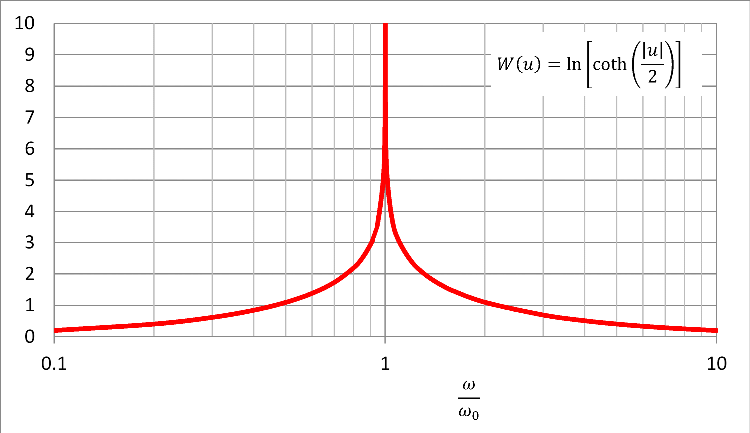 さらに、u=ln(ω/ω0)とおいて周波数も対数軸とし、双曲線関数を使用して表記すると