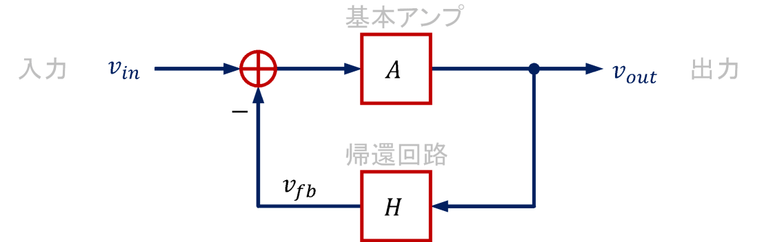\begin{align} \frac{v_{out}}{v_{in}}=\frac{A}{1+AH}\approx \frac{1}{H}\quad AH\gt\gt 1\text{ の場合} \end{align}と帰還回路の特性で決まります。つまり、基本アンプ部分の特性が多少変動してもゲインはほとんど変化しません。